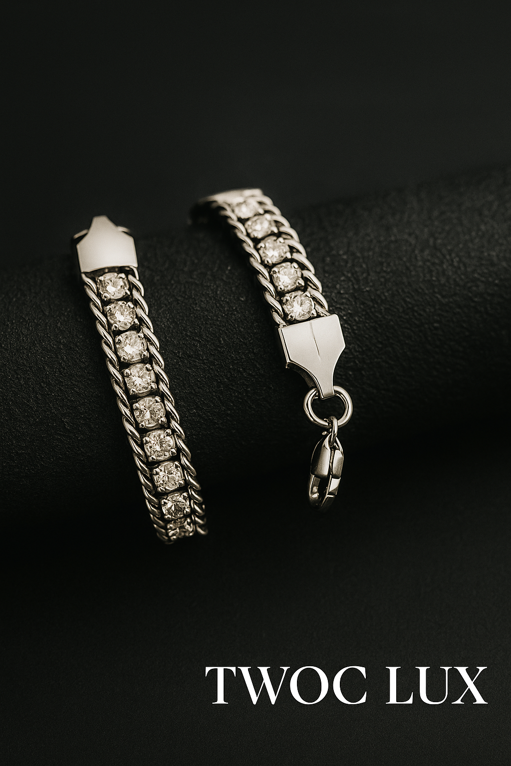 ▪︎ Elaborada en acero inoxidable premium, con incrustaciones brillantes de alta calidad.